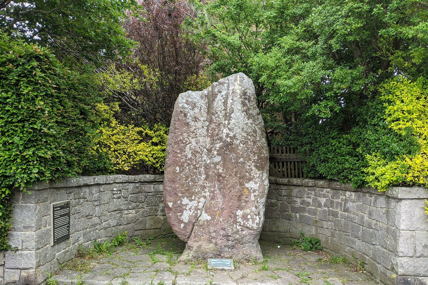 Yet another suburban standing stone can be found enclosed in a cage on Ravenswood Avenue across from Craigmillar Castle Park. At 6 feet tall it’s no slouch. Mary, Queen of Scots would almost certainly have visited it during her stays at Craigmillar Castle, and such stones were often used as mustering points for armies departing on campaigns.