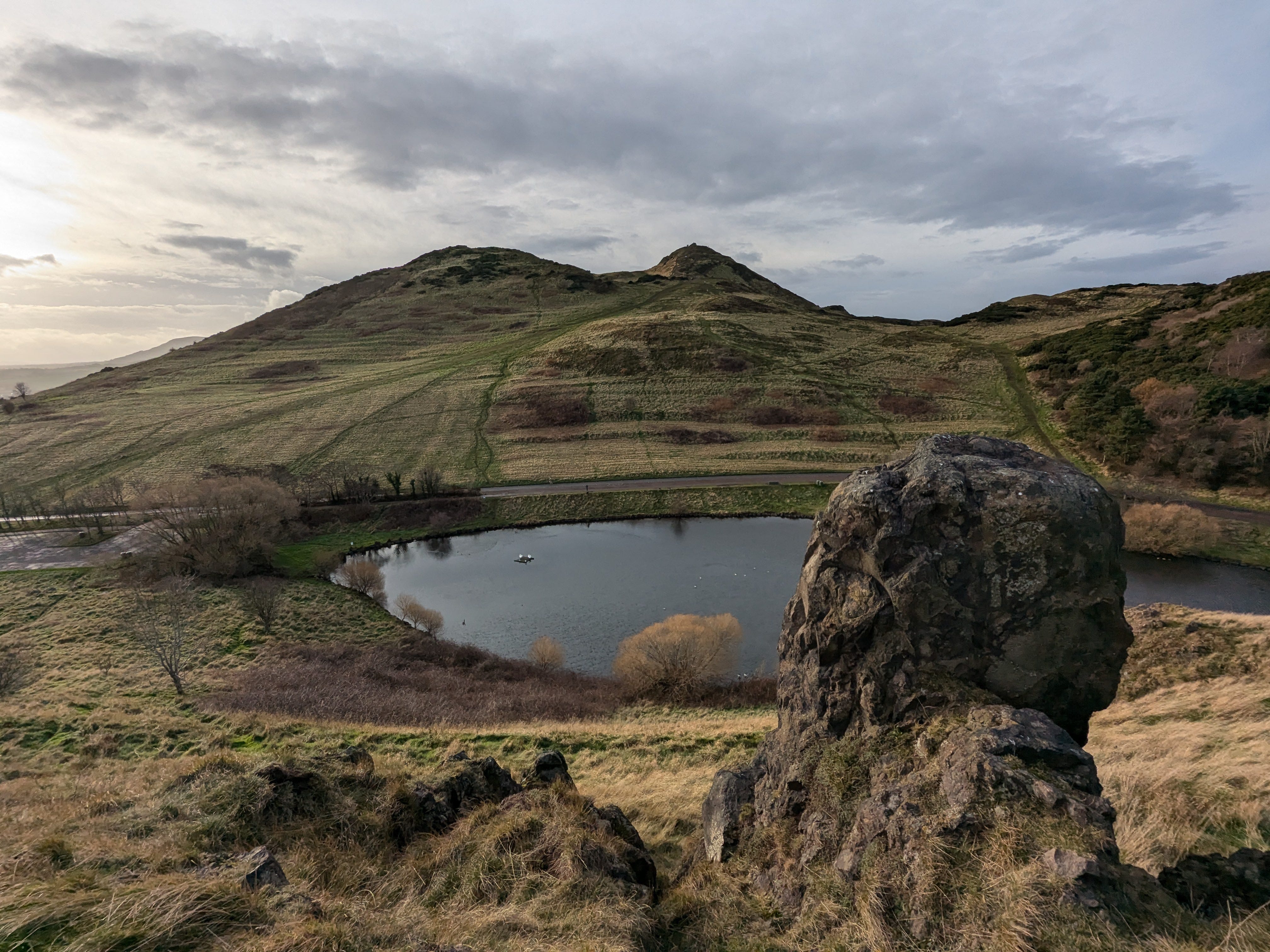 Holyrood Park was home to four hillforts occupied since the Bronze Age into the Early Historic Period: Dunsapie Crag, Crow Hill, Samson’s Ribs, and atop the Salisbury Crags. Dunsapie Crag is the best-preserved of them, though manage expectations – the timber roundhouses and ramparts which once crowned the crag are now only faint impressions in the ground. More apparent on the slope directly across from it are the forehead wrinkle-like lines of Iron Age cultivation terraces.