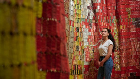 EPIC ART: A series of monumental wall sculptures go on display at the University of Edinburgh’s Talbot Rice Gallery in the biggest UK exhibition of one of Africa’s most acclaimed artists. Ghanaian artist’s El Anatsui epic wall hangings crafted from bottle tops alongside carved wooden reliefs and other works. The exhibition, entitled Scottish Mission Book Depot Keta, includes a 15-metre wall hanging that covers the facade of the Old College Quadrangle. The free to enter exhibition runs until 29 September.